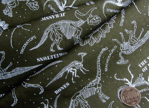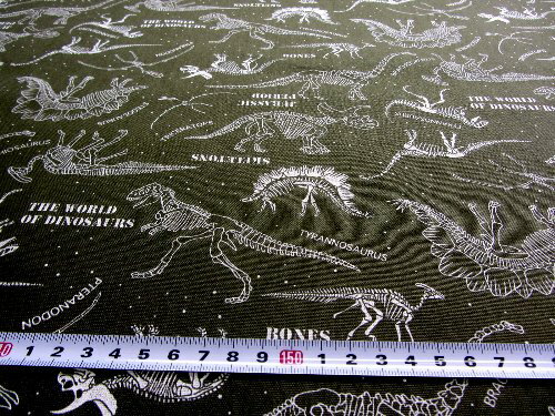 )現在地 ● トップ > ママがんばって! > 生地 > プリント柄 > 恐竜標本 > ダーク カーキ 生地 オックス(綿100%) (生地の種類の説明は このページの下にあります) 生地幅 約108cm (柄の大きさは、ものさしの目盛りを参考にしてください。