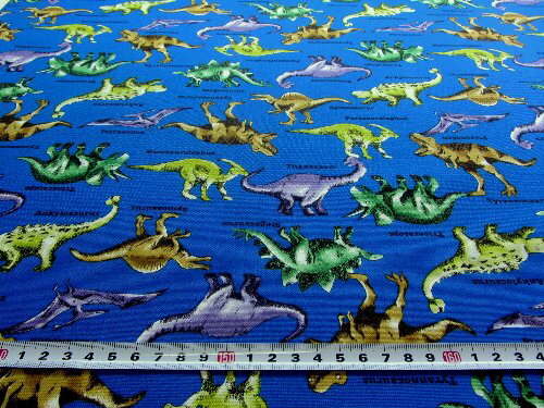 )現在地 ● トップ > ママがんばって! > 生地 > プリント柄 > 恐竜の世界 > 青 生地 オックス(綿100%) (生地の種類の説明は このページの下にあります) 生地幅 約108cm (柄の大きさは、ものさしの目盛りを参考にしてください。